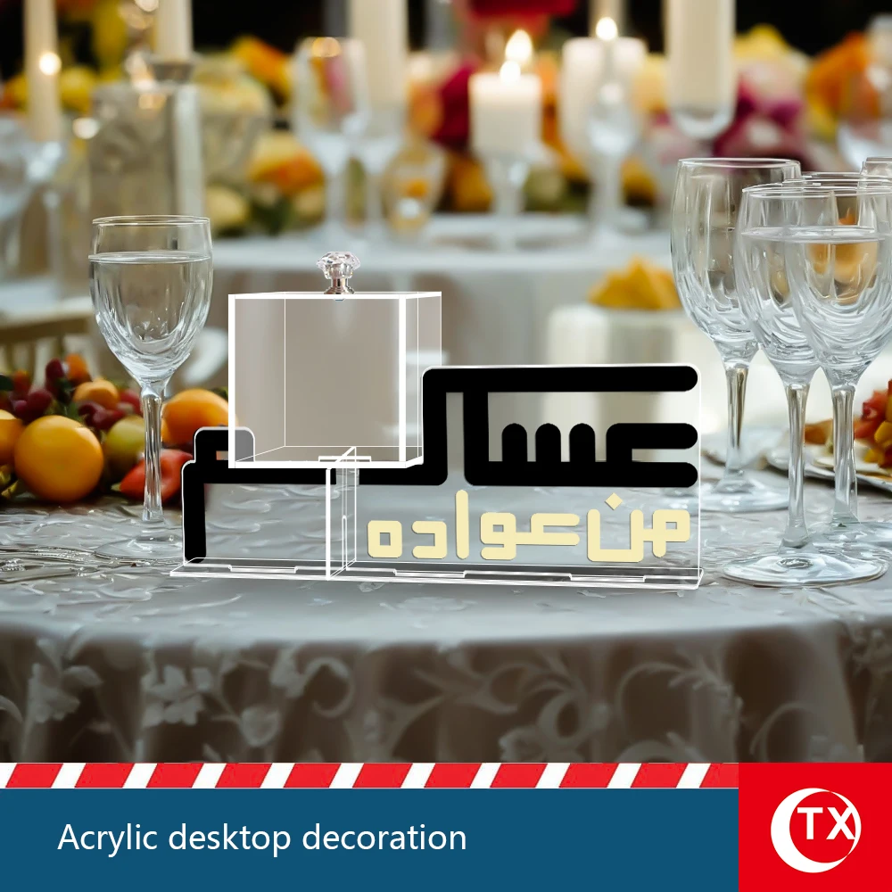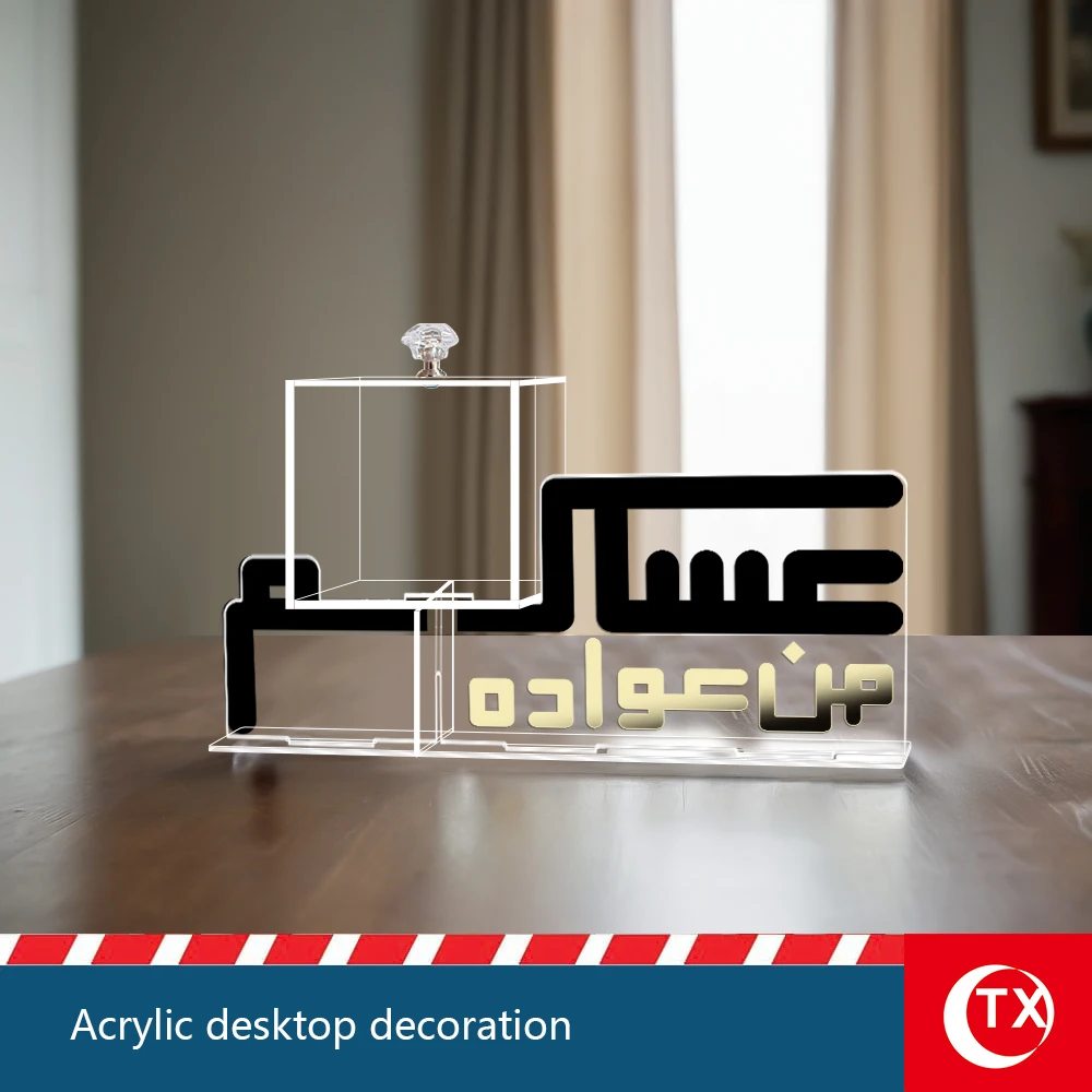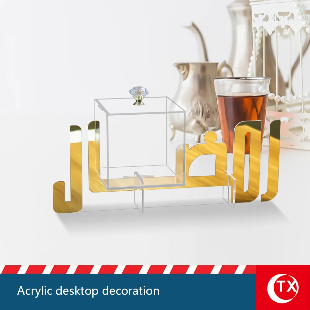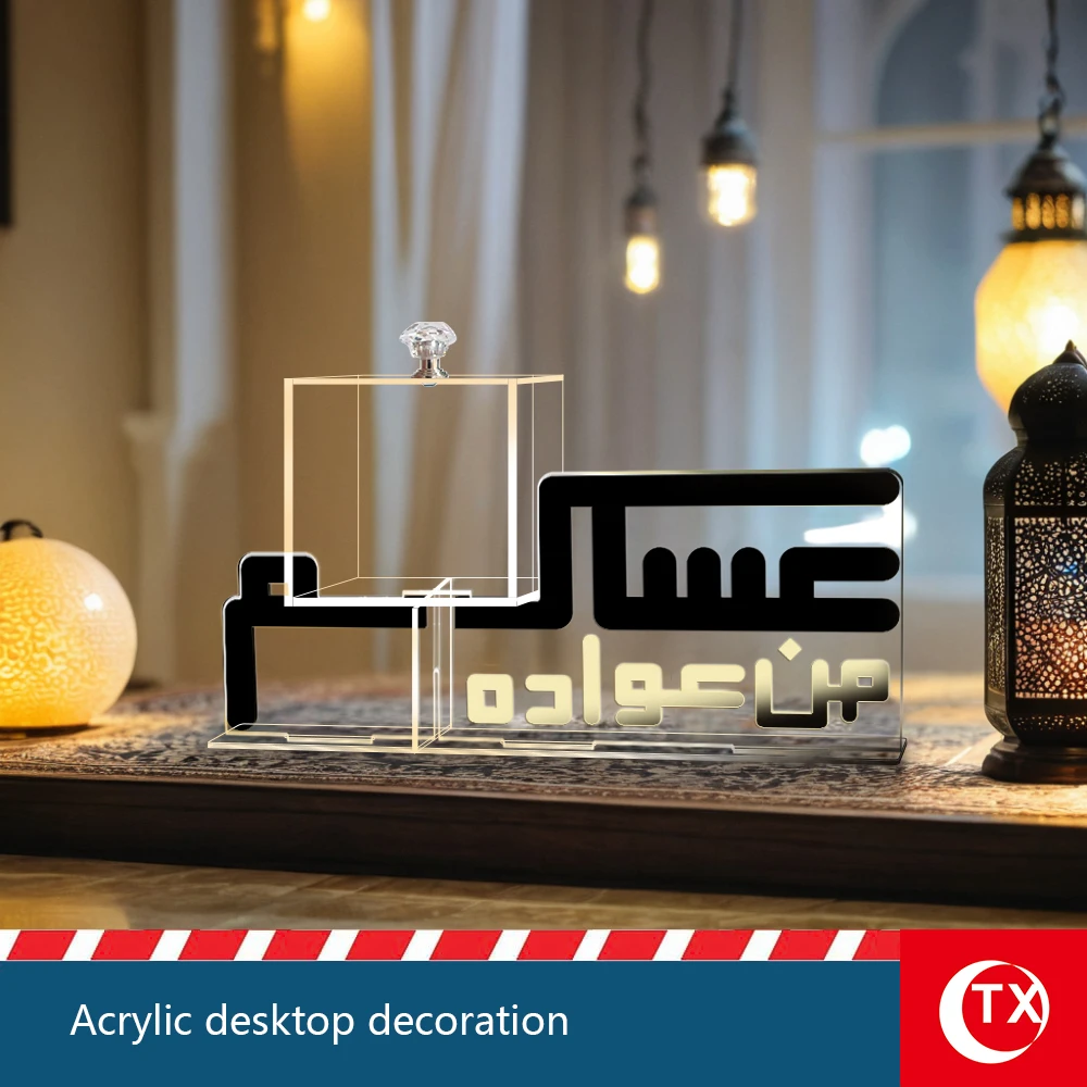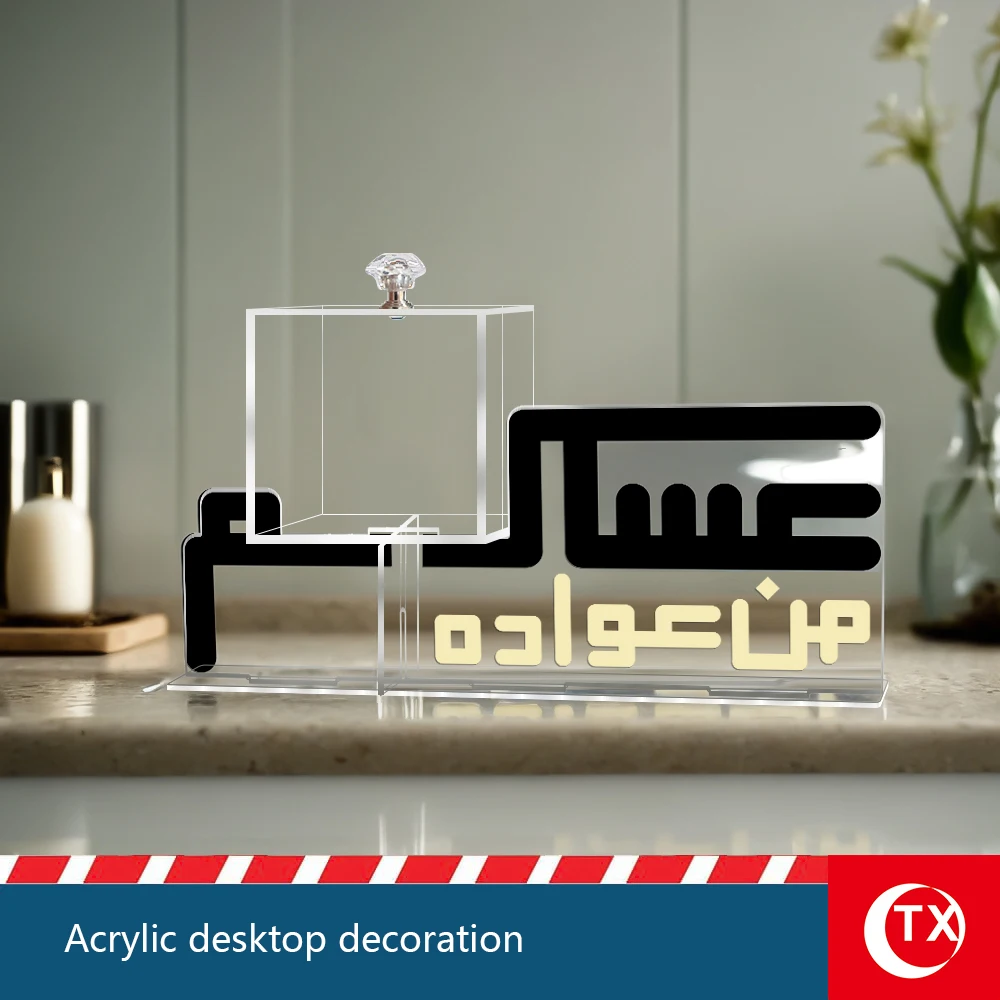 صندوق عربي أكريليك، زينة رمضان، هدية عيد مبارك، ديكور منزلي مسلم، صندوق تخزين التاريخ، حامل حلوى شفاف، ديكور الخط العربي، زخرفة طاولة إسلامية