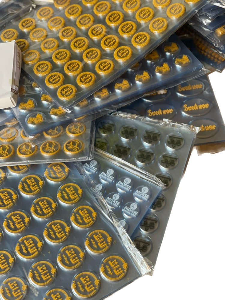 مثال:- الشيت الواحد مقاس دائريي 3.5 سم ينتج لك 48 لوقو وهكذا