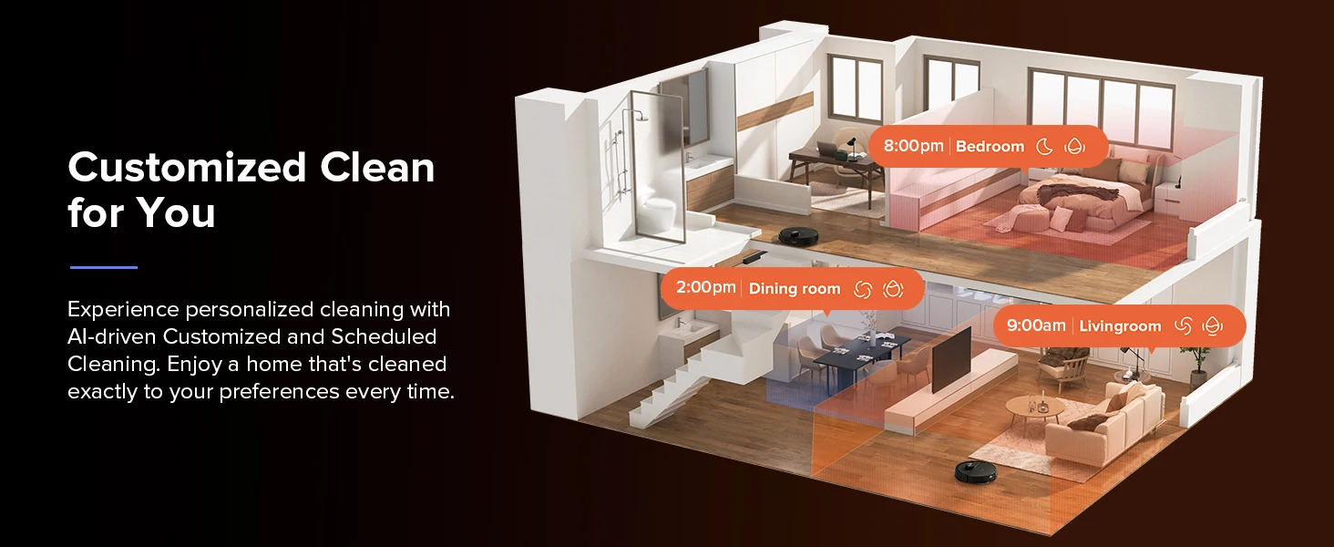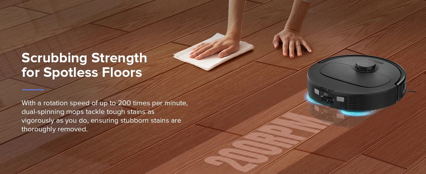 With 10mm auto mop lifting, effortlessly transitions between vacuuming carpets and mopping floors. When returning to the dock, the mop also automatically lifts ensuring thorough cleaning in a single pass, leaving no dirty streaks on your floors.