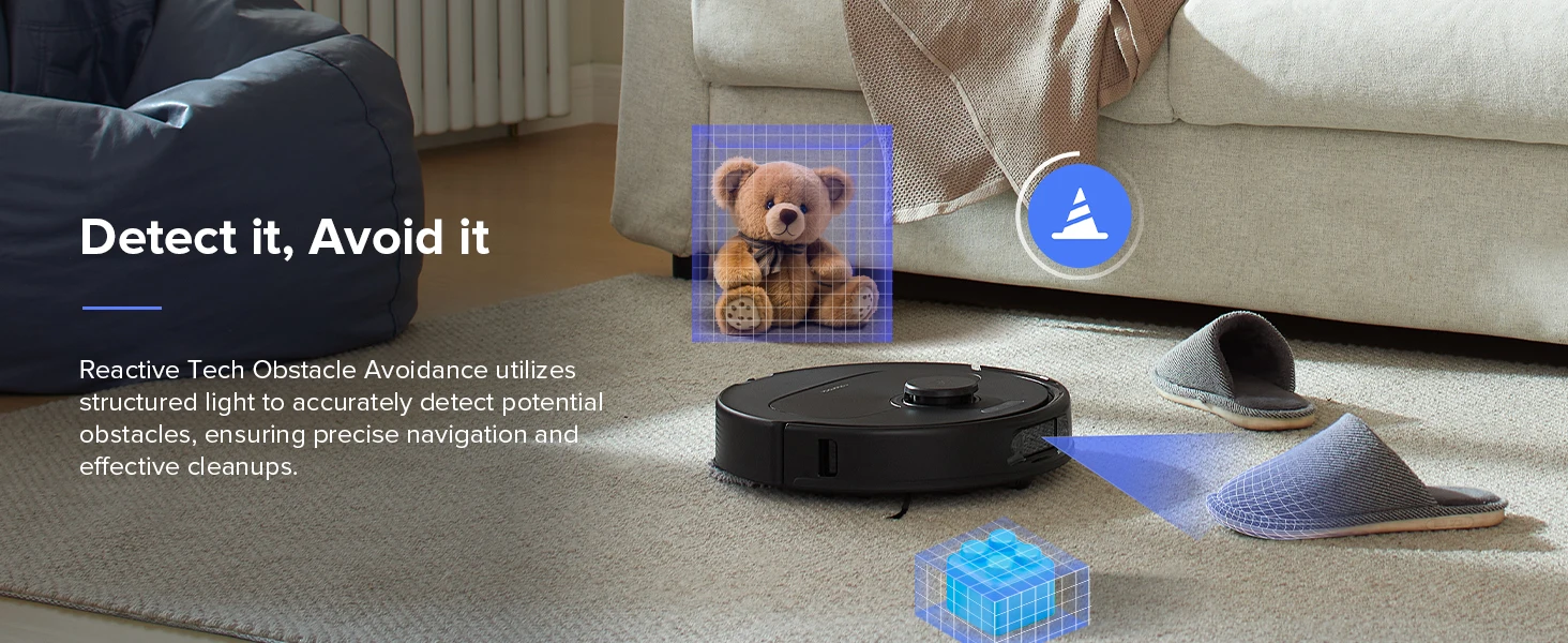 Detects and circumvents potential hazards with unparalleled precision, making cleaning a breeze. Powered by PreciSense LiDAR Navigation and 3D Mapping Technology, it generates detailed maps for accurate and tailored cleaning, allowing you to view your home in 3D.