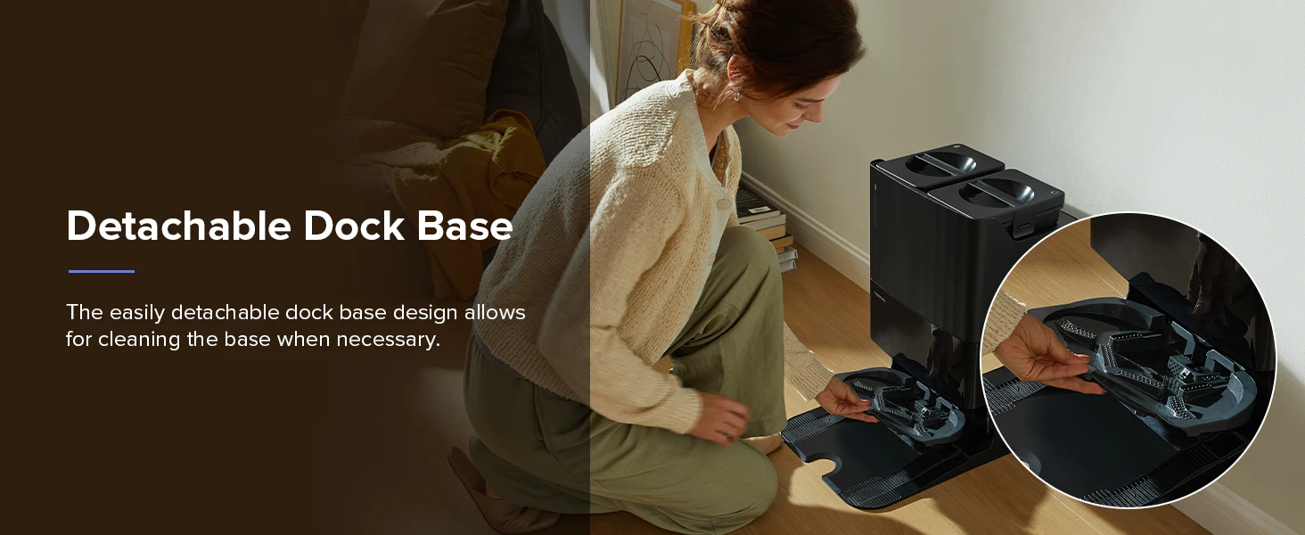 Simplify your cleaning routine with the Multifunctional Dock. Enjoy hassle-free maintenance with its Auto Mop Washing feature, eliminating the need for manual scrubbing. Prevent unpleasant odors with Hot Air Drying post-cleanup, guaranteeing a consistently fresh-smelling home. The 5L water tank effortlessly refills the robot's tank, covering a vast mopping area of up to 4305 sqft. Benefit from hands-free operation for up to 7 weeks with its self-emptying capability. Plus, the easily detachable dock base facilitates thorough cleaning whenever necessary, providing you with the utmost convenience.